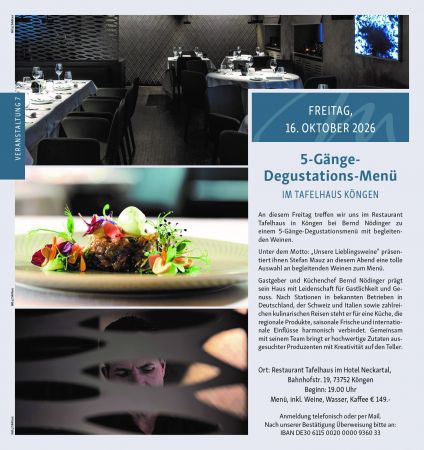 5-Gänge Degustationsmenü im Tafelhaus in Köngen